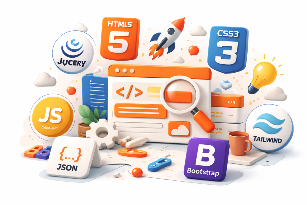 I build clean, responsive, and interactive interfaces using HTML5, CSS3, JavaScript, jQuery, JSON, Bootstrap, and Tailwind CSS.